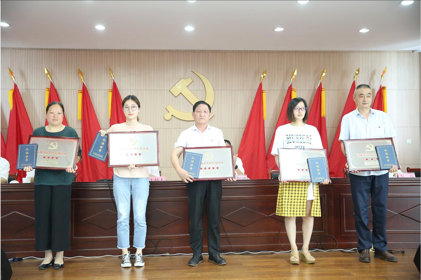 新譽(yù)集團(tuán)黨委被評(píng)定為“五星級(jí)非公企業(yè)黨組織”(中間),是高新區(qū)首次評(píng)定的唯一一家“五星級(jí)”!