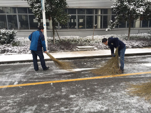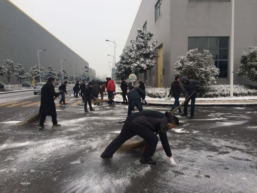 首頁(yè) > 集團(tuán)新聞1月31日晚的一場(chǎng)大雪把新譽(yù)裝扮得銀裝素裹,但積雪也使得廠區(qū)道路變得濕滑。第二天一早,BCP的志愿者提前來(lái)到公司,及時(shí)清除路面冰凍,保障職工交通安全。