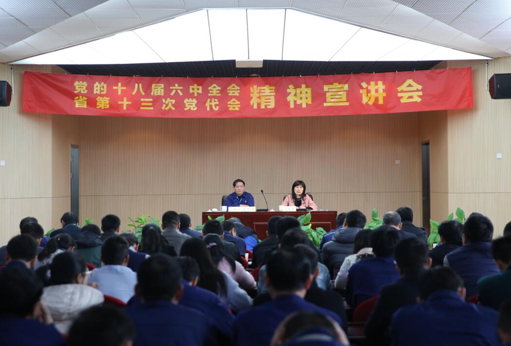 首頁(yè) > 集團(tuán)新聞 為幫助大家進(jìn)一步全面深入了解、貫徹落實(shí)黨的十八屆六中全會(huì)和江蘇省第十三次黨代會(huì)精神,11月26日,新譽(yù)集團(tuán)舉行“黨的十八屆六中全會(huì) 省第十三次黨代會(huì)精神” 宣講會(huì),集團(tuán)全體黨員及中高層領(lǐng)導(dǎo)共200余人參加。省第十三次黨代會(huì)代表、集團(tuán)黨委書(shū)記戈亞琴傳達(dá)了江蘇省第十三次黨代會(huì)精神,常州市委黨校理論研究中心主任康永超教授宣講了黨的十八屆六中全會(huì)精神。