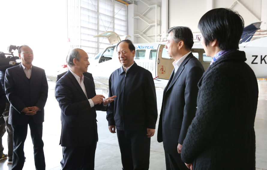 石泰峰一行首先登上了由宇航自行設(shè)計(jì)、改裝的CRJ—200公務(wù)機(jī),參觀了駕駛艙、客艙,了解飛機(jī)內(nèi)部構(gòu)造和改裝創(chuàng)新過程。隨后來到宇航機(jī)庫,實(shí)地考察并詳細(xì)了解了宇航的發(fā)展情況和戰(zhàn)略規(guī)劃。